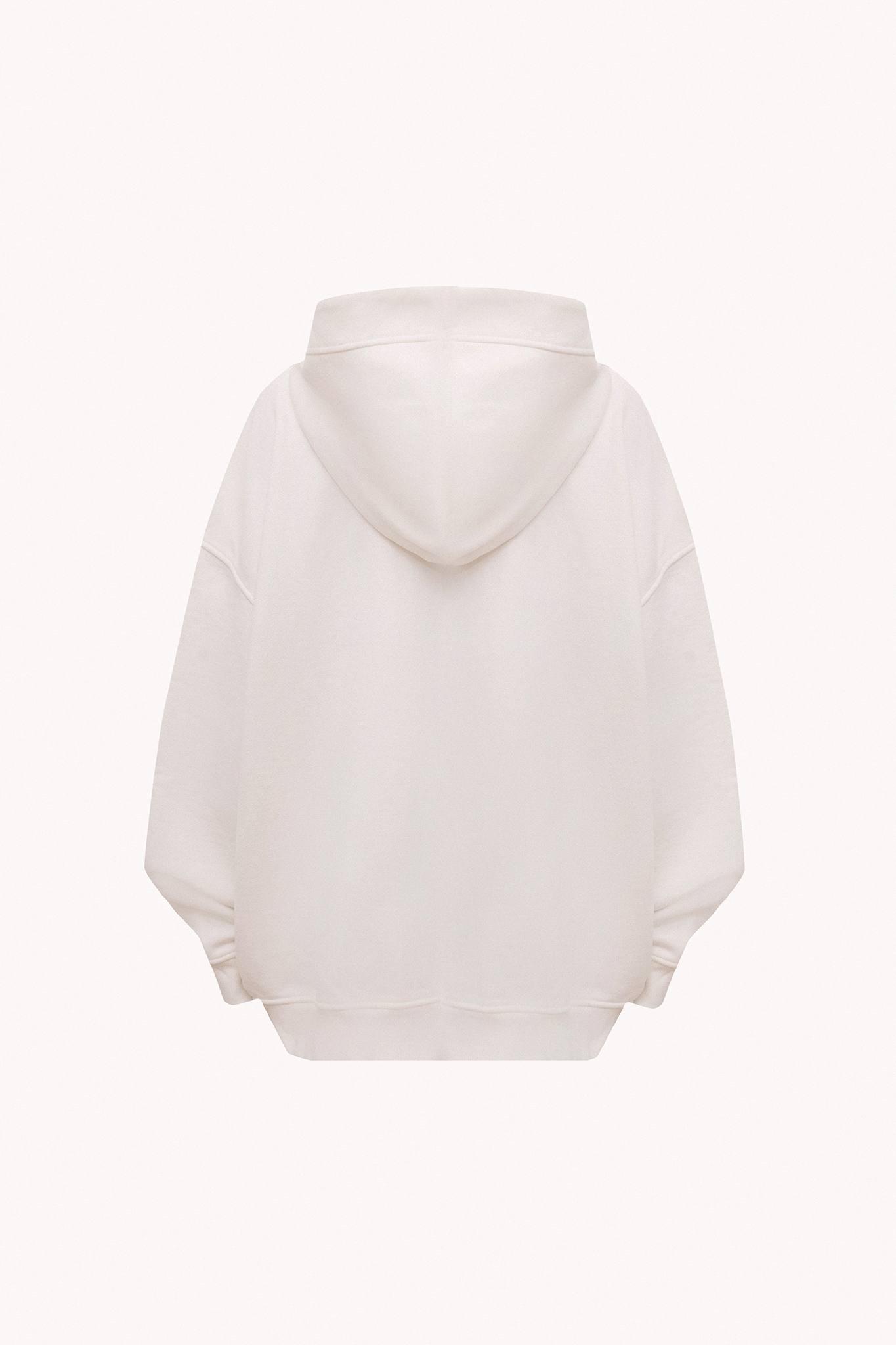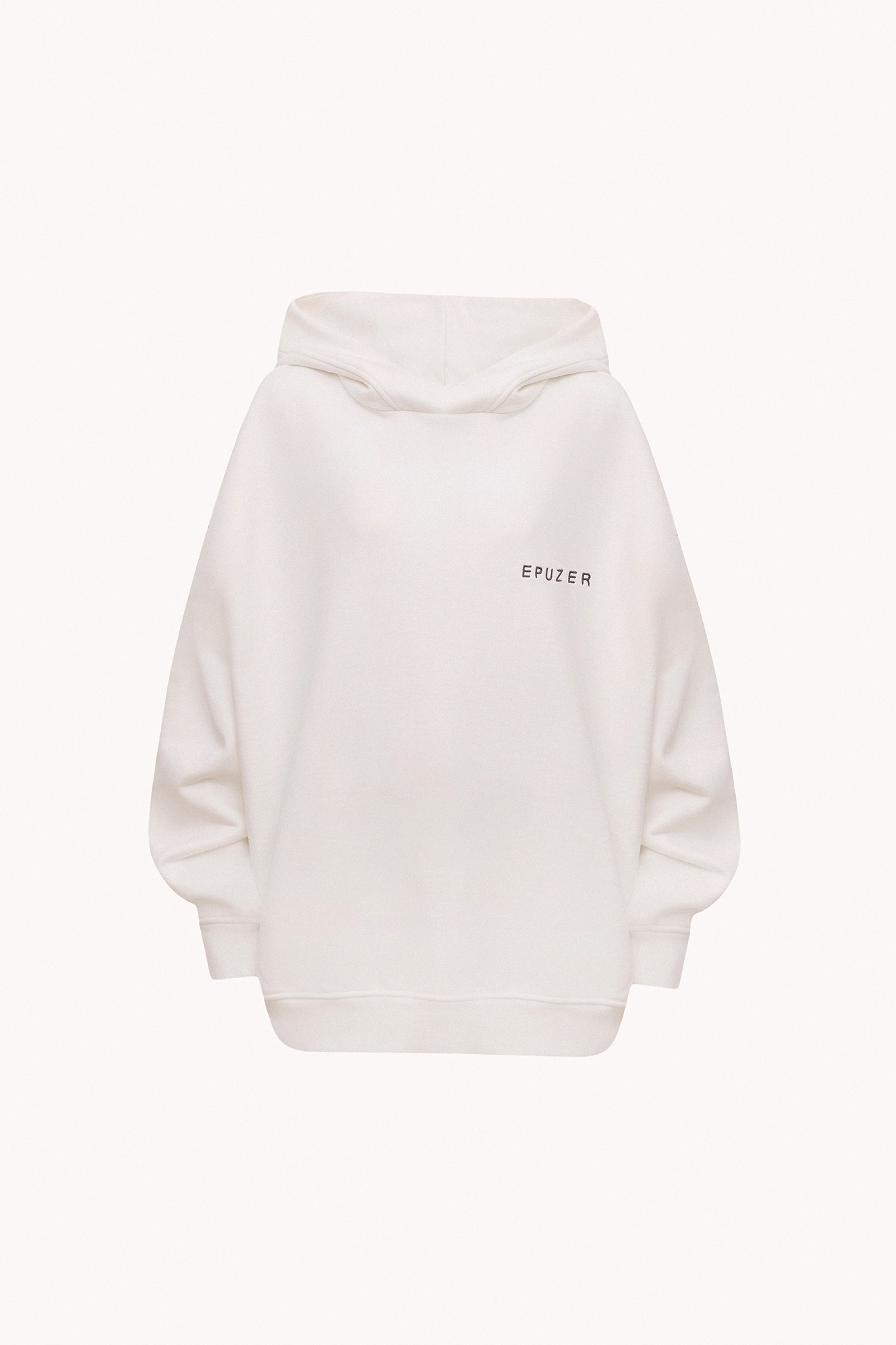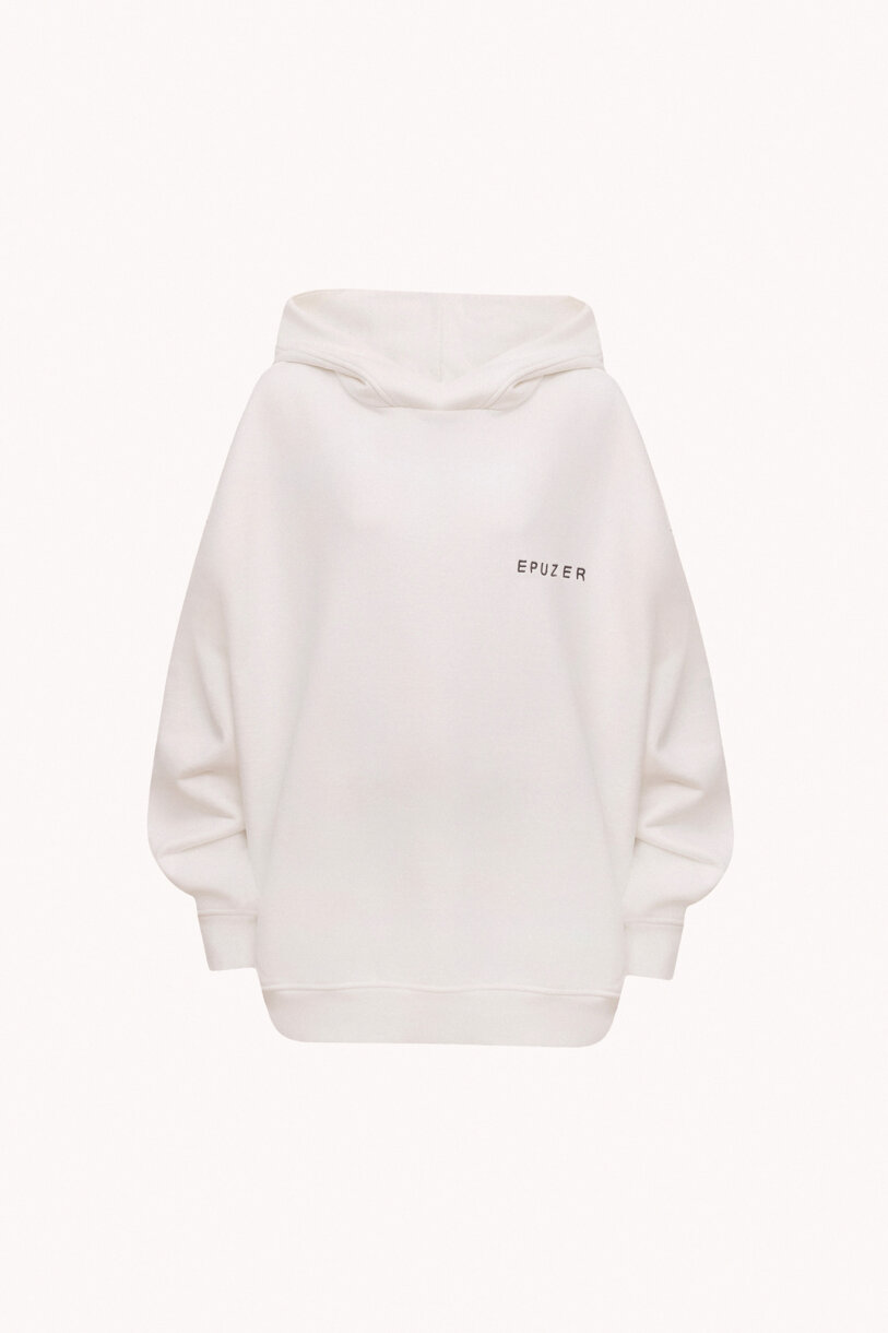 Oversize’owa bluza z kapturem w odcieniu off white. Wykonana z miękkiej premium bawełny o wykończeniu soft-touch. Brązowe logo Epuzer dodaje jej ciepła i charakteru. Czystość formy. Luksus w dotyku.