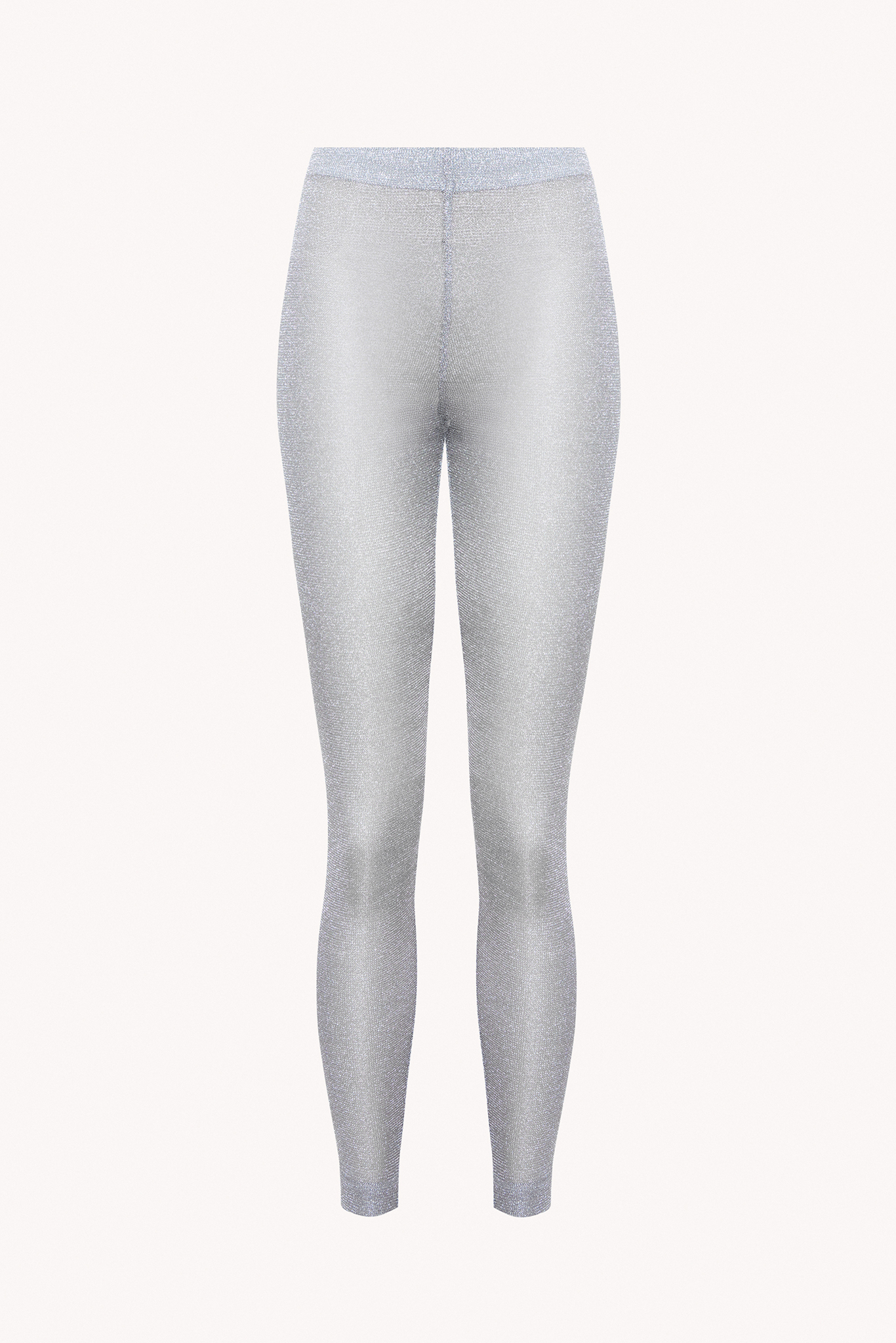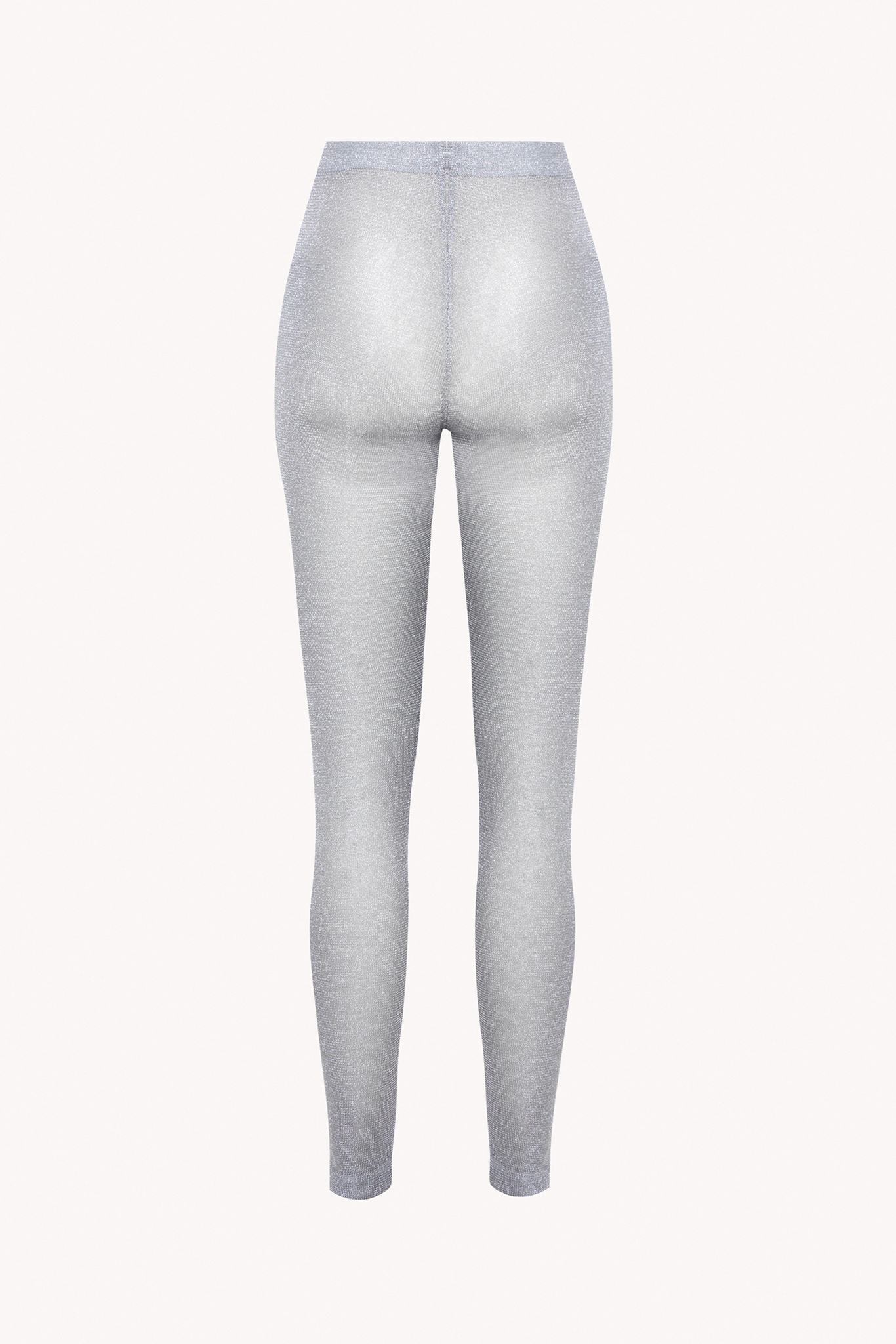 Leginsy z siatki srebrnej, wykonane z wiskozowej metalicznej przędzy. Skompletuj swój look z body z metalicznej przędzy w srebrnym kolorze.