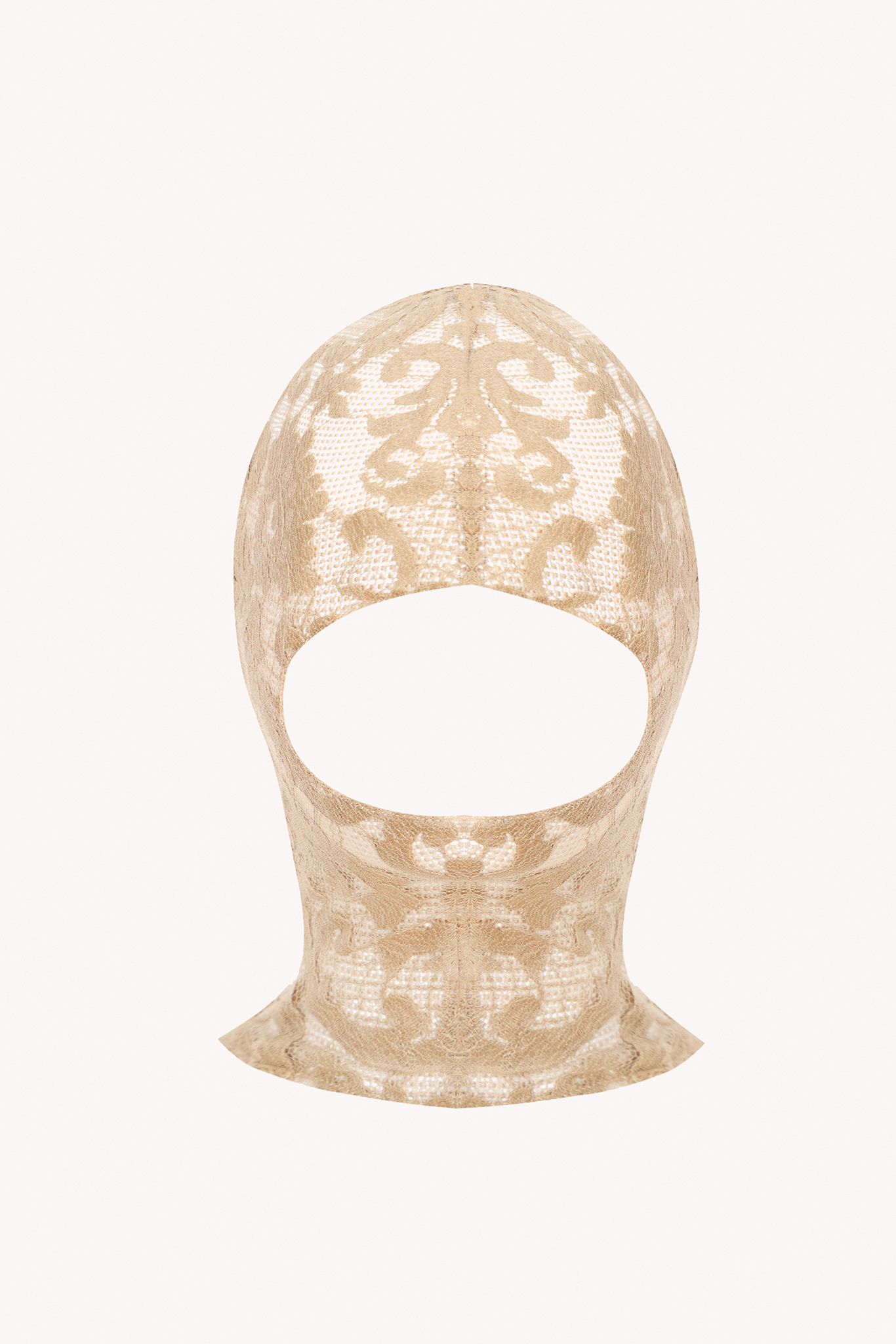 Ozdoba na głowę wykonana z delikatnej luksusowej koronki w odcieniu cielistym. Idealne dopełnienie sukni Aurora Lace Gown dodające teatralnego i tajemniczego charakteru.