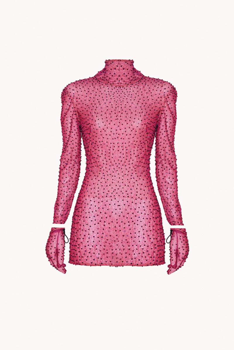 Transparentna spódnica maxi z różowych cekinów na siateczce. Skompletuj swój look z cekinowym topem.